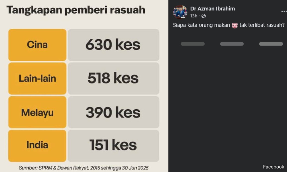 "The factor is easy to understand because Race M dominates the civil service. Other races are also involved in corruption as well," he said on Facebook today.